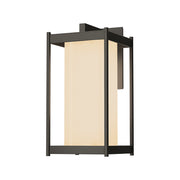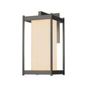 The Cela Large Outdoor Sconce is a striking piece of contemporary outdoor lighting that suits many architectural styles. Strong rectilinear lines of the aluminum frame hold a well-proportioned cylinder of blown glass. Sleek and minimalistic, the Cela wall-mounted sconce is offered in any of our six Coastal Outdoor Finishes.
