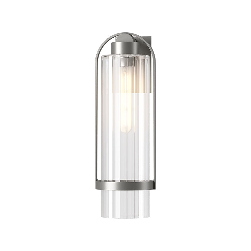 The Alcove Large Outdoor Sconce is a clean contemporary design that complements many architectural styles. The clear fluted glass disperses light in a subtle pattern, while the clean contemporary elemental forms made of hand-shaped aluminum are unified into a classic silhouette for this large wall mounted fixture.