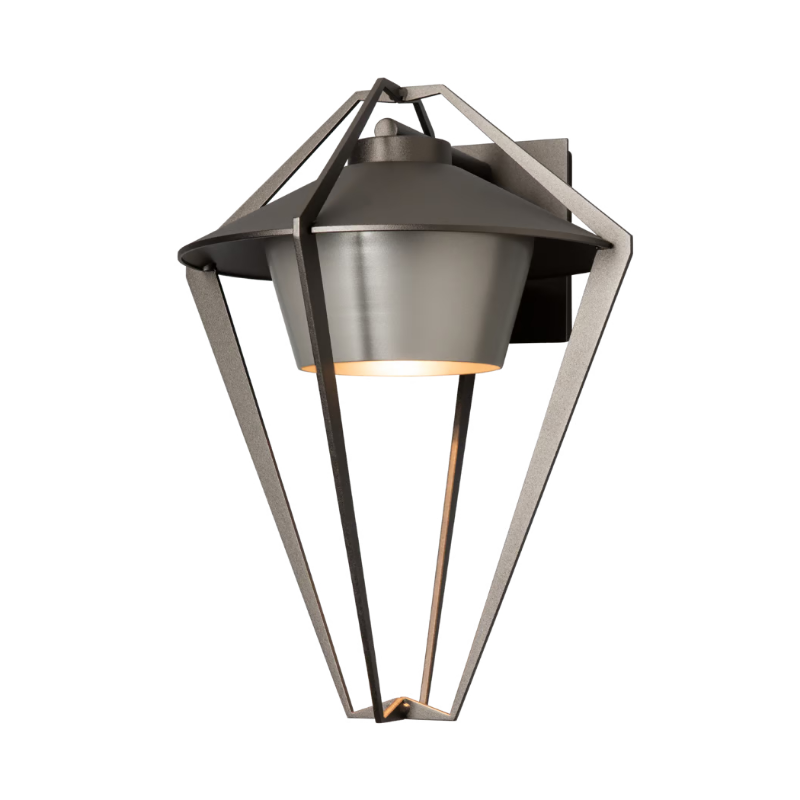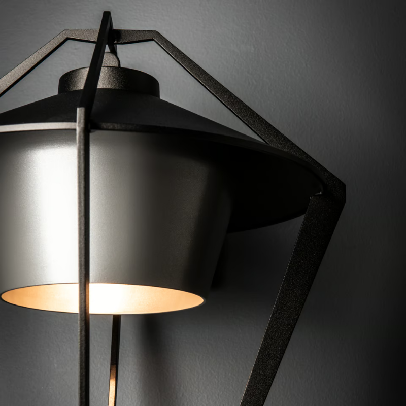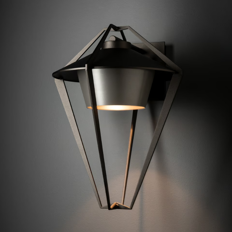 Much like its sister-sconce, this Stellar sconce is a classic lantern shape with a contemporary aesthetic featuring an open aluminum exo-structure containing the metal housing of the Stellar's lighting element. This Dark Sky Friendly version directs all light downward, protecting our skies from light pollution.