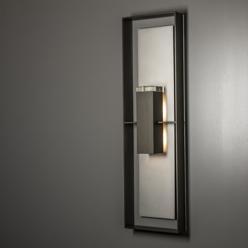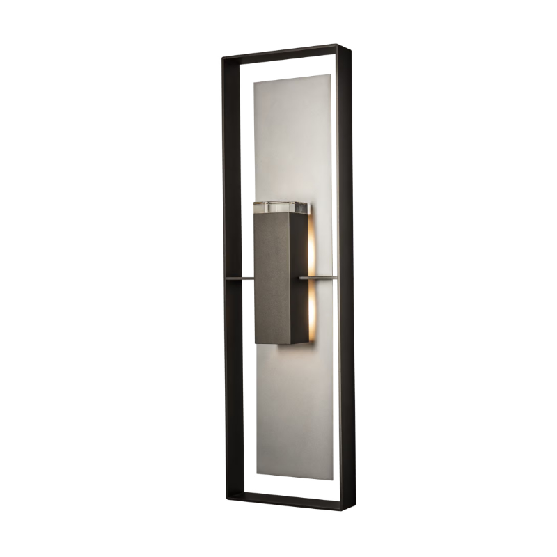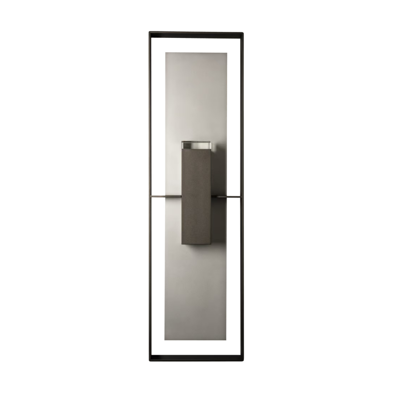 Welcome! This large scale outdoor wall-mounted fixture has an aluminum frame and backplate and is offered with a two-tone finish from among our robust, AAMA 2604-rated Coastal Outdoor Finish options. Standing at nearly 4ft (45”) high, this Dark Sky Friendly Shadow Box sconce has a modern geometry and aluminum construction that is both lightweight and durable. Perfect for a variety of architectural exteriors.