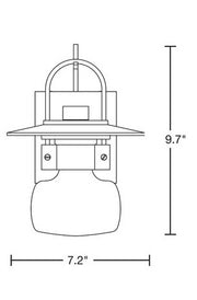 Our steampunk version of a traditional lantern is bold and striking. Our small Mason Outdoor Sconce shows plenty of craftsmanship, from the thick blown glass bell to the metallic curves of support arm and handle, to the details of the riveted collar-this has it all.