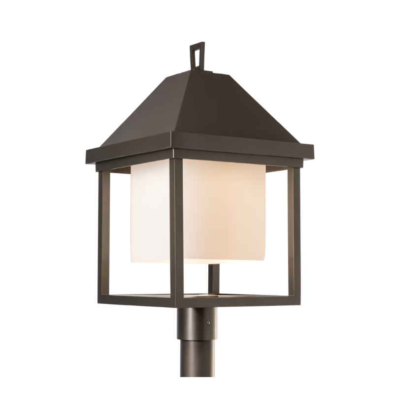 Welcome guests as they arrive or light our outdoor paths to enjoy evening strolls while enjoying the night sky's constellations with this Dark Sky Friendly post light. The Dorset's classic lantern-style details and large square faces are complemented by its pyramid "roof" that houses your choice of a large clear, seeded or opal glass element.
