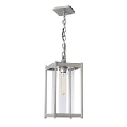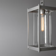 The Cela Large Outdoor Lantern is a modern interpretation of the classic lantern. The strong rectilinear lines of the aluminum frame hold a well-proportioned cylinder of blown glass, chain-hung ceiling pendant. The Cela design is a perfect addition to any outdoor space, or even as a stylish indoor fixture.