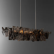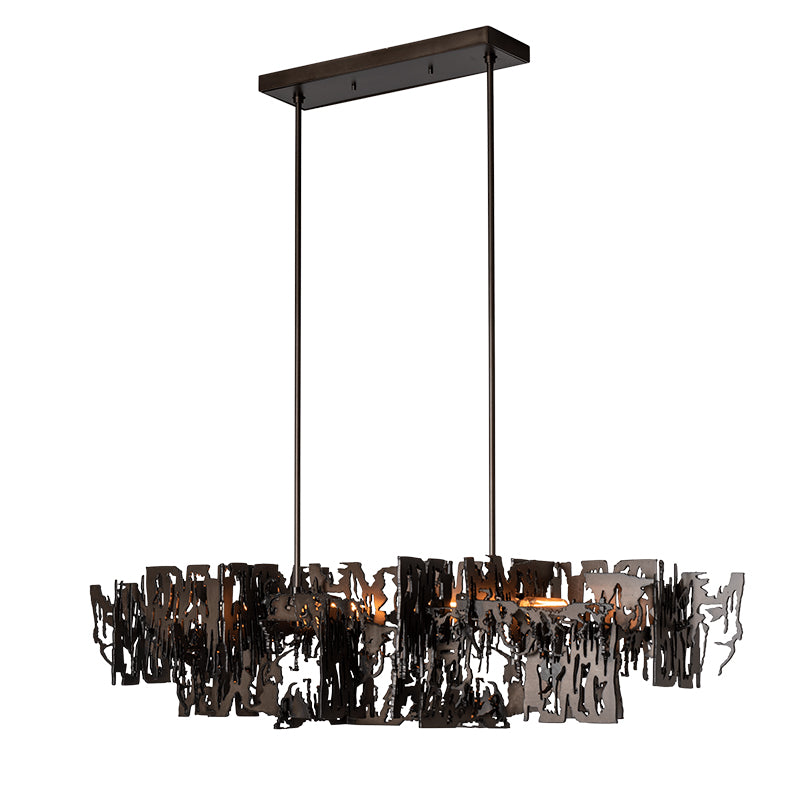 Brutus Pendant is a statement piece that will make a bold and aggressive statement in any space. The Brutalism movement of the ‘60s and ‘70s is revisited with this pendant design. Welded layers of steel are combined to create a unique, one-of-a-kind lighting fixture.