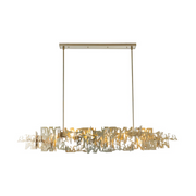 At over 5 ft in breadth, this large Brutus Pendant makes a bold statement in any space. The Brutalism movement of the ‘60s and ‘70s is apparent in this pendant design. Designer Jason Hancock created a complex metal puzzle whose pieces are combined to create a unique, one-of-a-kind lighting fixture. Part of ART + ALCHEMY by Hubbardton Forge.
