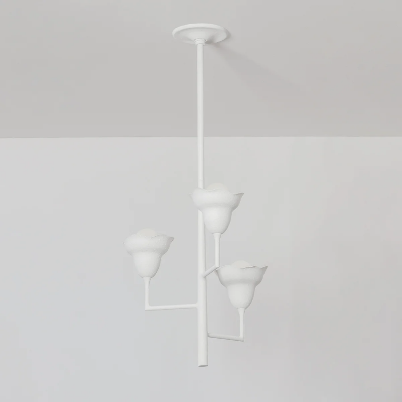 Architectural and sleek, but with an artful, botanical flourish, Alora has strong modern design appeal. While the framework features clean lines and right angles, the scalloped floral shades have an irregular, hand-sculpted quality. A textural relief pattern on the surface of the shades adds visual interest. *Fixture may only be installed as shown in picture.