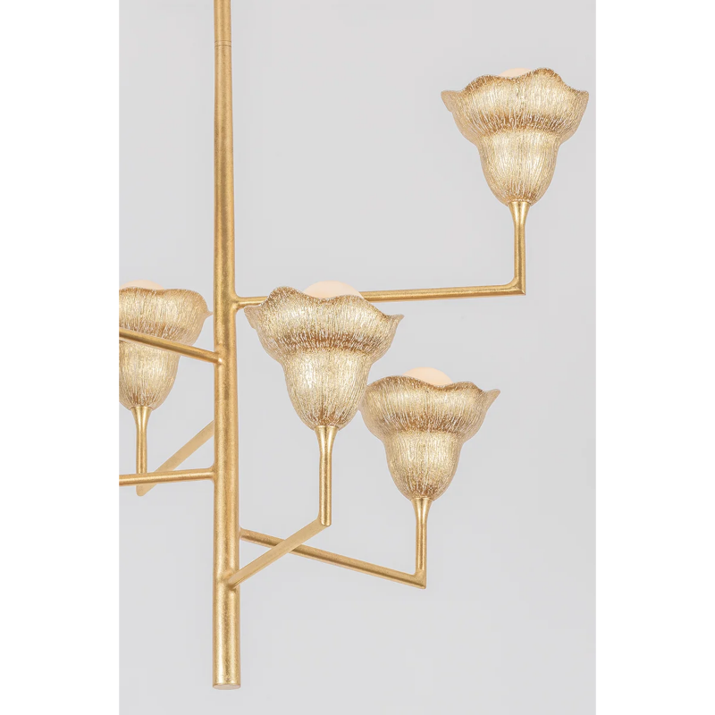 Architectural and sleek, but with an artful, botanical flourish, Alora has strong modern design appeal. While the framework features clean lines and right angles, the scalloped floral shades have an irregular, hand-sculpted quality. A textural relief pattern on the surface of the shades adds visual interest. *Fixture may only be installed as shown in picture.