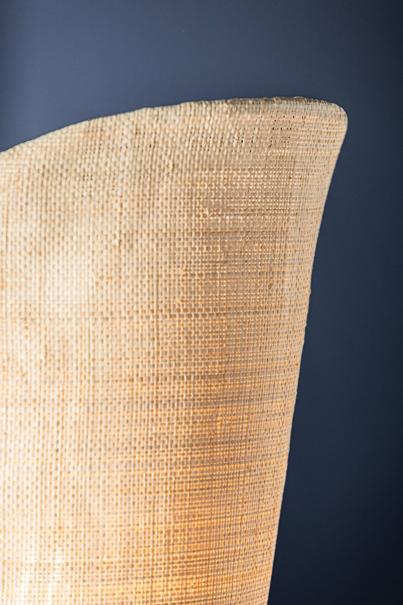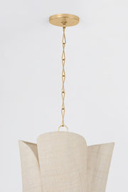 Marrying organic aesthetics with contemporary design, the raffia panels of Springhill envelop the warm, inviting light within. Curled like leaves around the light source, the tapered shade celebrates the time-honored craft and tactile qualities of the woven raffia. Suspended from a minimalist Gold Leaf chain, Springhill is a sophisticated and fresh accent pendant.