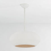 Entirely handcrafted from white coiled cotton cord, the Ferndale pendant is a pure expression of materiality. The small gaps between the coils allow light to escape, creating a warm, glowing effect that fills the entire shade. *Due to the one-of-a-kind nature of the medium, exact colors and patterns may vary slightly from the image shown.