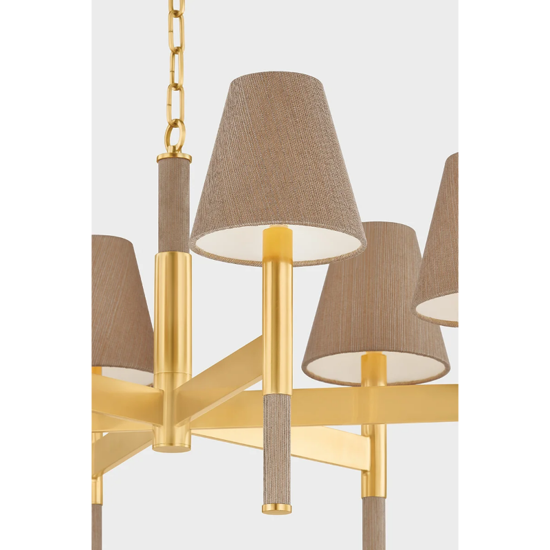 Wrapped, woven, and precision-fitted elements elevate the traditional silhouette of Lindenwood. Creating an exciting conversation between natural and manmade elements, the Aged Brass metalwork supports grasscloth-covered stems and shades. *Due to the one-of-a-kind nature of the medium, exact colors and patterns may vary slightly from the image shown.