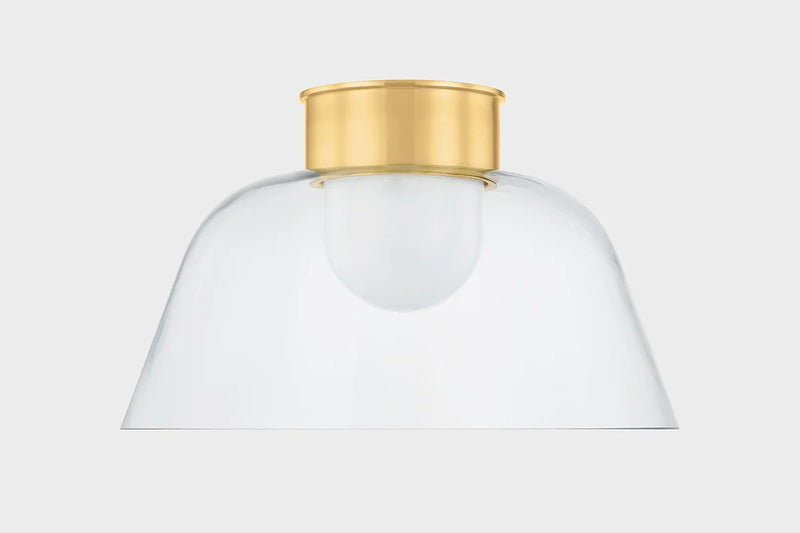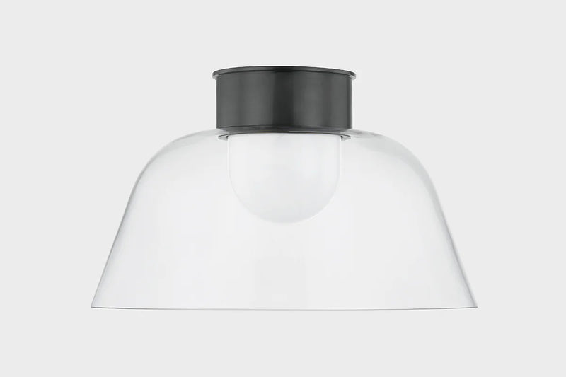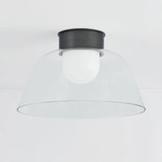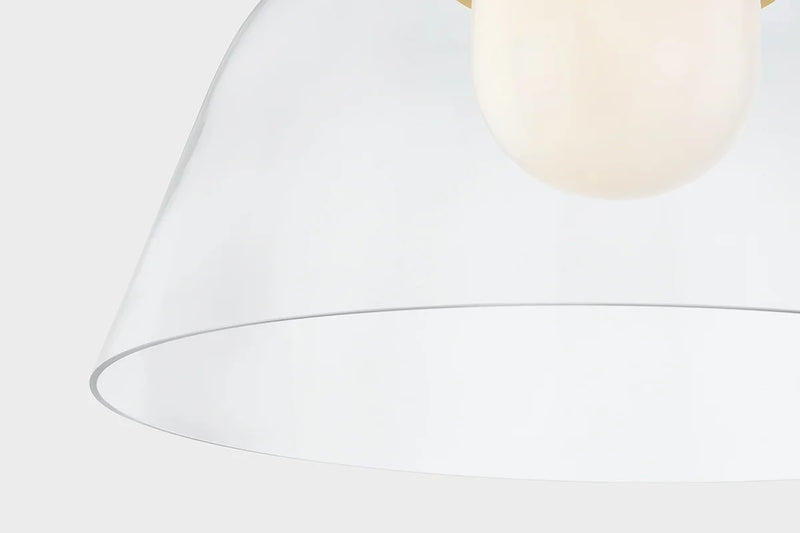 A celebration of the beauty of pared-down forms, Lakeside features an opal glossy inner diffuser surrounded by a clear outer glass layer. Shaped like a graceful bowl, this flush mount forgoes ornamentation save for its extra-tall metal canopy.