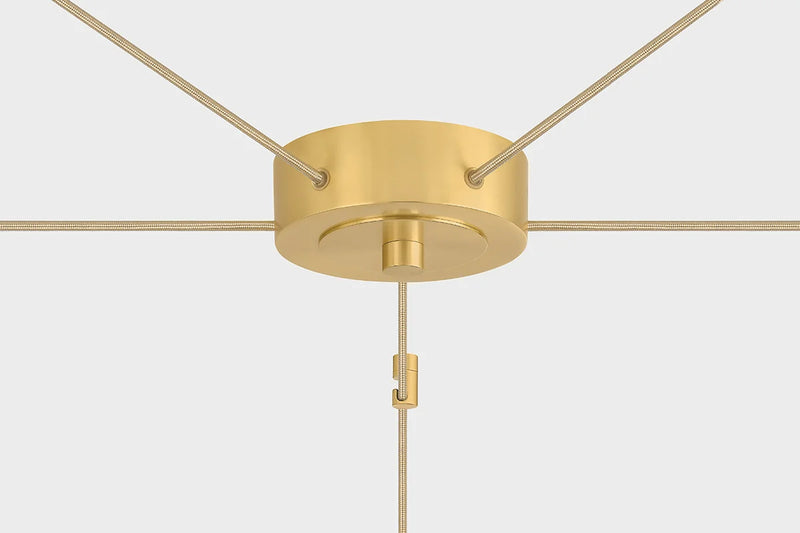The Ironwood chandelier features many soft, dangling shades that resemble raindrops. The opal seedy glass gives each form an organic, textural appearance, while an Aged Brass finish adds a touch of elegance to the nature-inspired design.