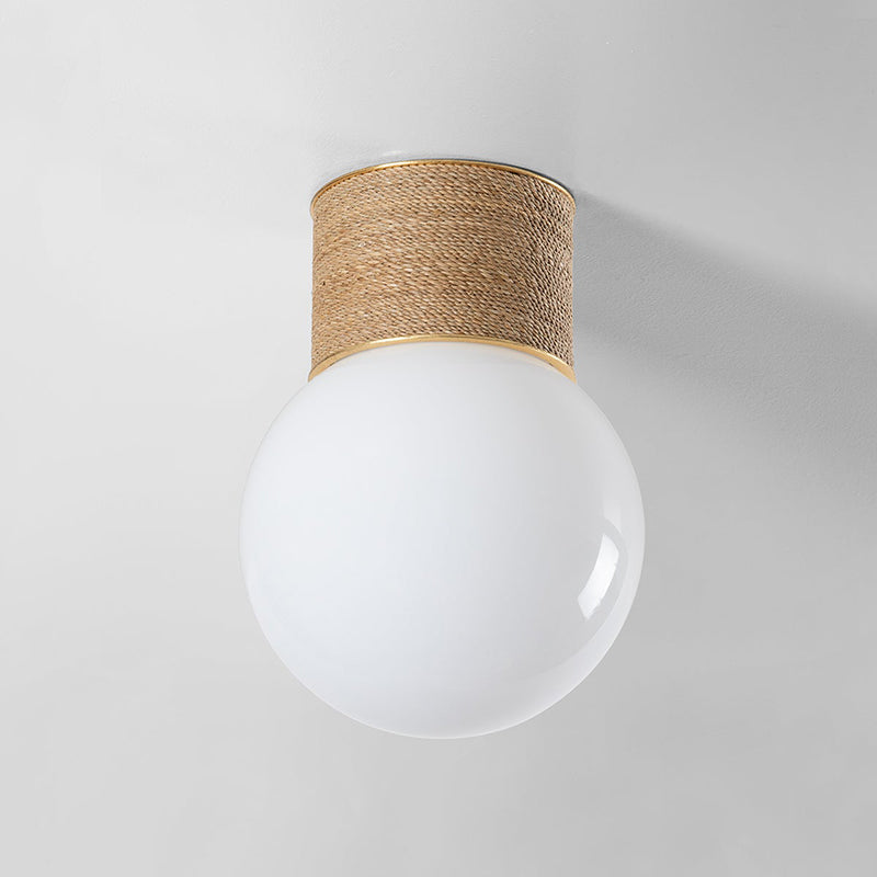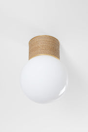 Modern meets rustic in this nautical-inspired flush mount. A testament to craftsmanship, the mount is hand-wrapped in natural Abaca rope, creating an organic, coastal effect. Ideal for a hallway or small living space, the extra-large opal glossy bulb provides soft, milky illumination.