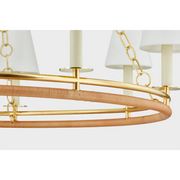 A distinctive double-ring chandelier presents the opportunity to play with mixing materials. As if in conversation, the upper ring of Swanton is finished in sleek Aged Brass, while the lower is cleanly wrapped in natural rattan. *Due to the one-of-a-kind nature of the medium, exact colors and patterns may vary slightly from the image shown.