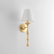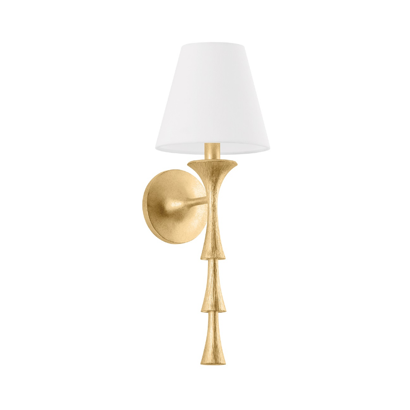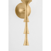 Nature meets geometry in the elevated Vails Gate. This pendant features a repetitious stack of flared trumpet forms, reminiscent of the nodes on a flower stem. Fluting details add depth to the symmetrical design, nodding to its organic origins. Finished in Vintage Gold Leaf, Vails Gate is available as a pendant light in two sizes and a 1-light sconce. *Fixture may only be installed as shown in picture.