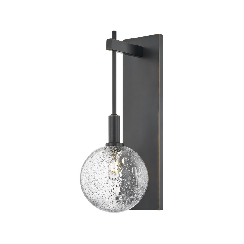 Drawing inspiration from a clock pendulum, the artful silhouette of Onteora makes a striking statement on the wall. The verticality and sleek forms call attention to the finer details, from the ornate seedy glass to the extended stem. *Fixture may only be installed as shown in picture.