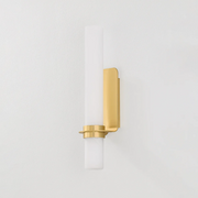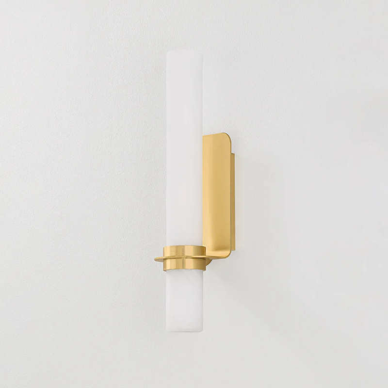 The rounded edges of Groveland Station soften the angularity of minimalist spaces. Supported by an innovative curved backplate and bracket system, this matte cloud glass tube sconce provides peak versatility with two size options. Made from a single piece of metal, the backplate frames the shade to reflect light in all directions.