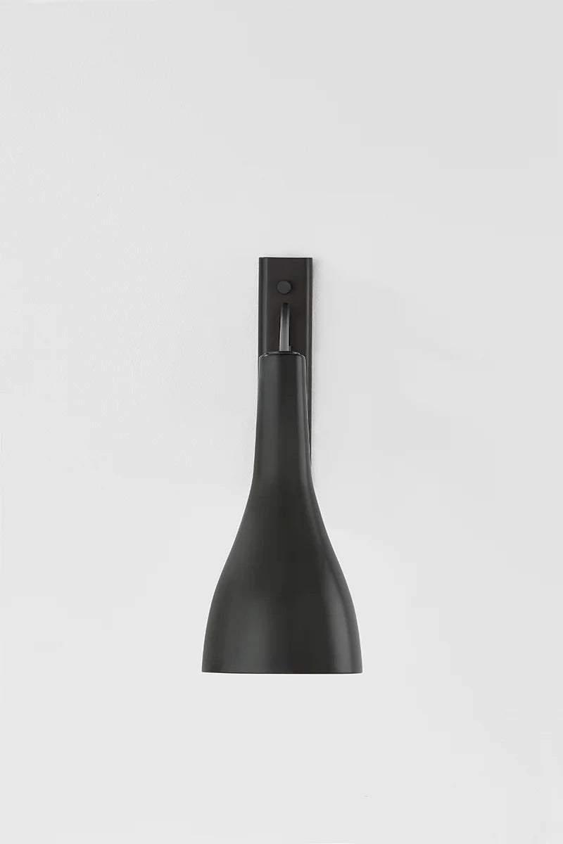 Inspired by mid-century design aesthetics, Northford features a playful triangular arm and bell-shaped shade. The narrow backplate includes a dimmer switch that allows for precise adjustments in brightness. This fixture is perfect as a reading light above a sofa or lounge chair, or anywhere adjustable task lighting is required.