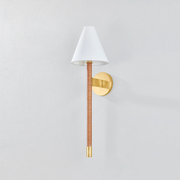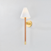 Inspired by vintage wicker chairs, Watkins celebrates the natural beauty of rattan. As light washes from the shade onto the stem, it highlights the intricate braided detail and earthy hue of the material. The subtle grain on the petite linen shade adds to the organic appeal of this sconce. *Due to the one-of-a-kind nature of the medium, exact colors and patterns may vary slightly from the image shown.