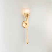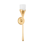 Melding simplicity of form with a floral-inspired motif, this timeless sconce adds a romantic touch to small spaces. A single, slender stem crafted from Vintage Gold Leaf tapers gracefully at the center before opening into a bloom-like setting. Crafted from opaque, cloud glass, the shade gently glows when lit.
