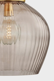 The elegance of vintage Art Deco style blooms to life in the glamorous Chatton family. Blown from light bronze fluted glass, the tulip-shaped shade provides a delicate companion to the graceful metalwork finished in Aged Brass.