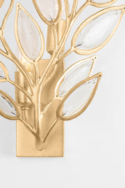 Cast in Vintage Gold Leaf, the branches of Fairlee extend with a flourish. Representing the leaves on a tree, natural crystals diffuse soft light in all directions, creating intricate patterns on the walls and ceiling.