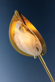 Marrying botanical inspiration with modern design elements, the Levin chandelier creates an imaginative focal point. Its sprawling, plant-like silhouette features graceful, staggered arms that finish in a leaf-shaped, downward-facing head. The delicate metalwork is paired with specialty Remolino Blanco glass shades.