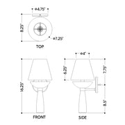 The artful totemic design of New Windsor elevates a traditional lamp silhouette by adding an upward-facing bowl made from natural alabaster. Taking the place of a bobeche, the milky stone is washed with light, creating a subtle glowing effect. A bullet-shaped tail complements the soft lines of the stacked forms.