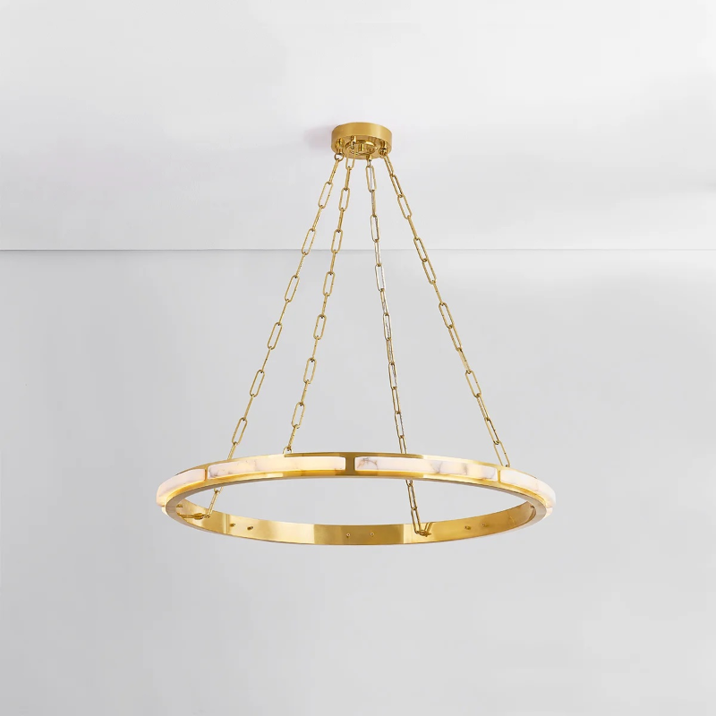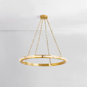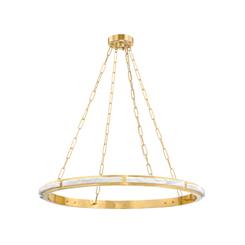 Sophisticated and serene, Wingate features a large Aged Brass ring adorned with alabaster. The concealed LED radiates a bright glow, illuminating the alabaster and reflecting off the brass. *Due to the one-of-a-kind nature of the medium, exact colors and patterns may vary slightly from the image shown.