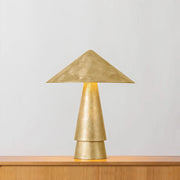 Inspired by antiquities, the Foxton table lamp cuts a bold figure with artistic geometry and textural finishes. The conical stacked base and pyramid-shaped shade provide a striking reimagination of a classic table lamp silhouette.