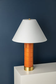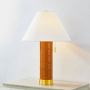 A celebration of heritage, this table lamp is a charming bedside or desk companion. The tactile leather-wrapped body brings a sense of old-world nostalgia achieved through fine craftsmanship. Topped with a tapered white linen shade and finished with an elegant Aged Brass pull switch and base, Norwalk creates a refined lighting experience.