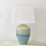 Capturing the colors of sand and sea with a mesmerizing drip effect, this ceramic table lamp is a serene addition to modern interiors. The painterly effect of Montville gives it a fresh-from-the-studio feel, while the glaze reflects light.