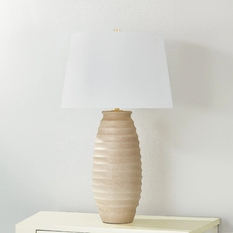 Bringing a fresh-from-the-studio feel to modern interiors, this evocative table lamp features a ceramic base with deep, organic grooves. Reminiscent of terracotta, the sculpted base is a testament to the skillful artisanship behind the piece.
