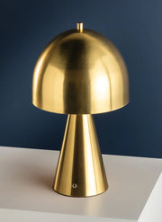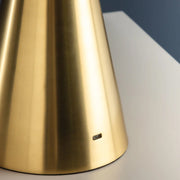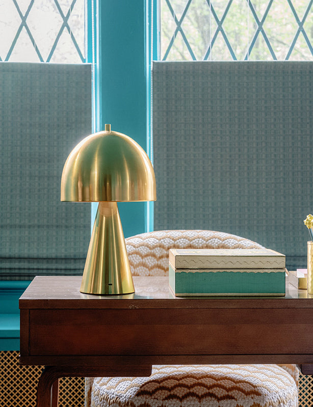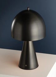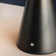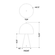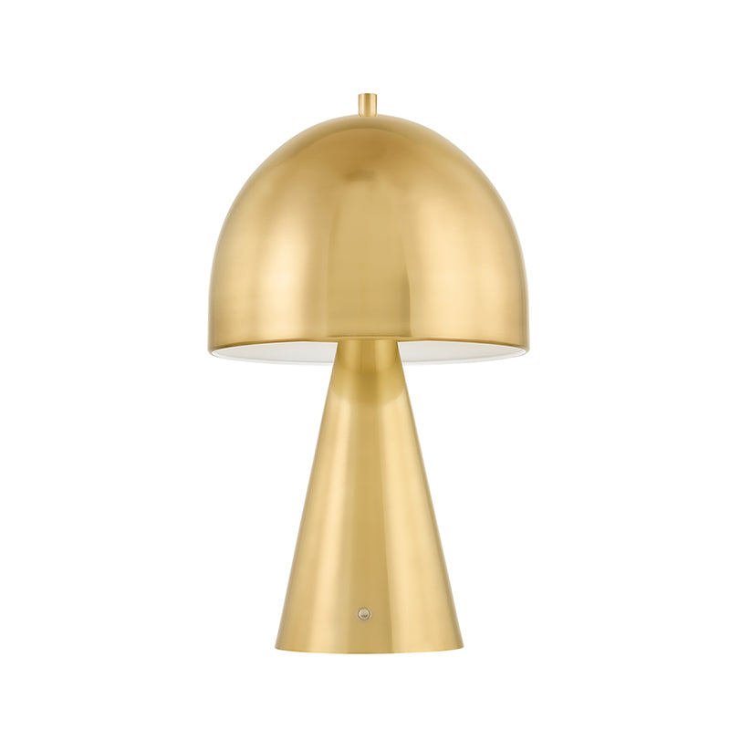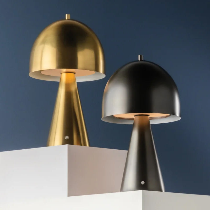 The contrast between the oblong domed shade and the conical base of Hopkinton creates a striking geometric design. Its integrated rechargeable LED light source ensures lasting functionality. The battery life of Hopkinton is dependent on the brightness level set by the user, and it recharges in 3.5 hours. This dimmable lamp can also be used while charging.