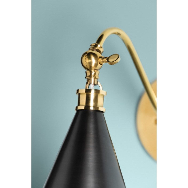 Osterley's simple, yet striking cone silhouette makes it both elegant and useable. The shade's Aged Brass inside contrasts beautifully with the Distressed Bronze outside. Hang the pendant in multiples over kitchen islands, dining tables and down hallways, or use alone to light a smaller space. Both sconces articulate making them ideal bedside or in a cozy reading nook. Part of our Mark D. Sikes collection.