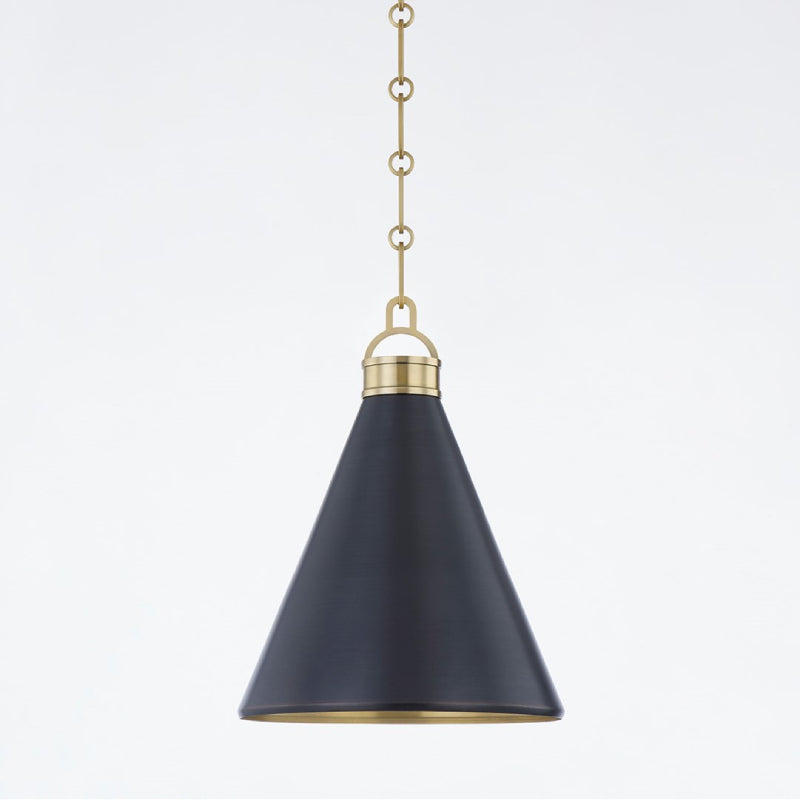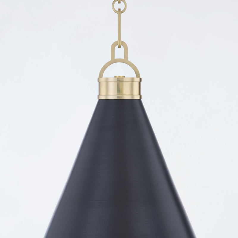 Osterley's simple, yet striking cone silhouette makes it both elegant and useable. The shade's Aged Brass inside contrasts beautifully with the Distressed Bronze outside. Hang the pendant in multiples over kitchen islands, dining tables and down hallways, or use alone to light a smaller space. Both sconces articulate making them ideal bedside or in a cozy reading nook.