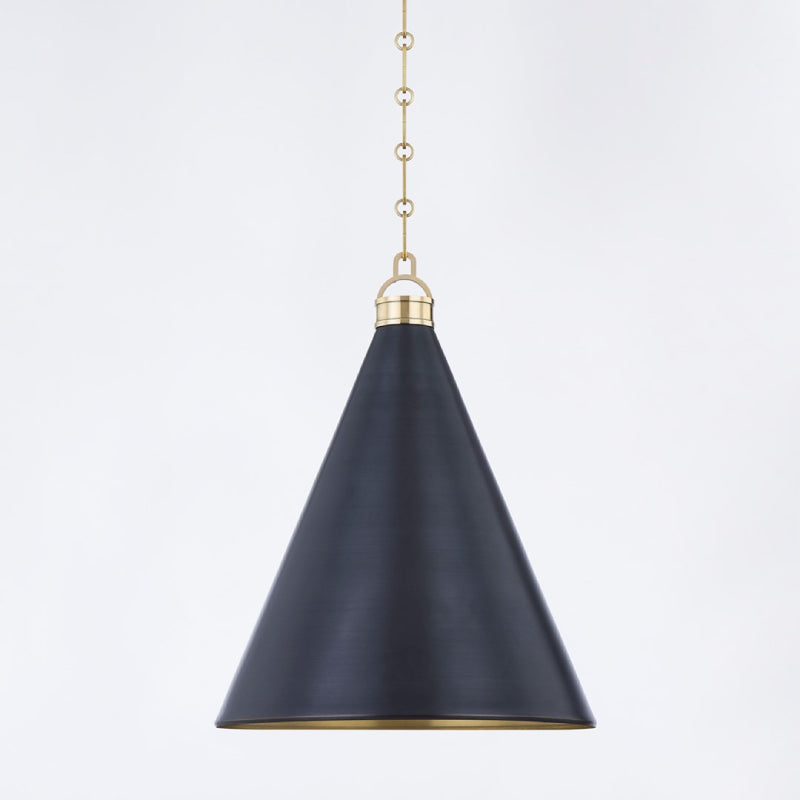 Osterley's simple, yet striking cone silhouette makes it both elegant and useable. The shade's Aged Brass inside contrasts beautifully with the Distressed Bronze outside. Hang the pendant in multiples over kitchen islands, dining tables and down hallways, or use alone to light a smaller space. Both sconces articulate making them ideal bedside or in a cozy reading nook.