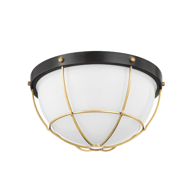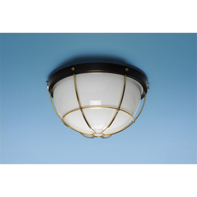 Gorgeous Aged Brass cagework and glossy opal glass give this recognizable silhouette an instant upgrade. The refined hardware and Off-White, Distressed Bronze, and Darkest Blue finish options add to Holkham's elevated nautical aesthetic. Part of our Mark D. Sikes collection.