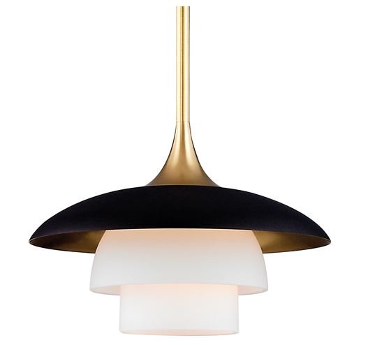 In the first half of the twentieth century, Danish architects attempted to address the issue of glare inherent in electric light. In our Barron family, we apply the solution they came up with—layered, curved shades—to light fixtures with a floral bent. A finely textured black on the outside and a metal finish on the inside, Barron’s shades are a visual delight in person. Opal-etched diffusers nested in pairs within each shade further soften and diffuse the light.