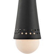 Evocations of geometry, nature, and organic chemistry all ring off our Tupelo family. LED light sources glow from within white opal diffusers designed to look snugly wedged into Tupelo’s black cones. A double-row of perforation allows this light to shine through the holes in the textural black metal. On both an engineering and design front, Tupelo’s a contemporary piece.