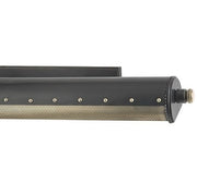 Our Gaines family applies industrial details such as studded rivets, perforated metalwork, and heavy brass extrusions to twenty-first century fixtures. Gaines offers a chance to add rich textural contrast and Machine Age intrigue to any space.