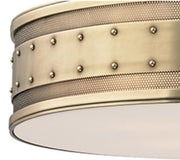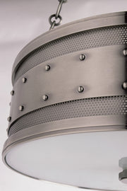 Our Gaines family applies industrial details such as studded rivets, perforated metalwork, and heavy brass extrusions to twenty-first century fixtures. Gaines offers a chance to add rich textural contrast and Machine Age intrigue to any space.