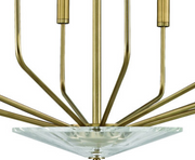Gideon’s arms are round rods bent at obtuse angles, submerging into long tubes of metal the same diameter as the tubular bulbs which fit into them. In its chandelier form, a large crystal plate at its base, secured between arms and finial, adds just the right accent to Gideon’s minimalism.