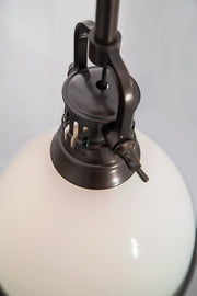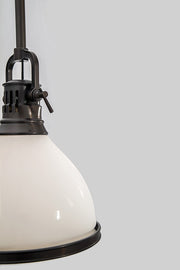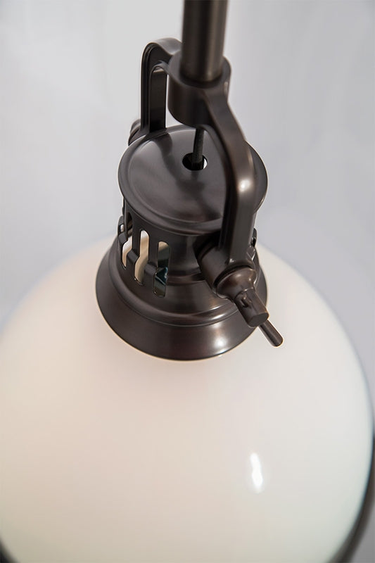 We marry functionality and refinement in the Randolph collection. Rather than a metal shade to meet the down-lighting requirements of a factory floor, we’ve outfitted Randolph with a glossy dome of opal glass to deliver bright task lighting beneath the fixture and warm ambient light throughout the room. Pendants are adjustable and feature cloth cording, cutout vents, and crisply beaded details—premium hallmarks that display our commitment to authentic design.