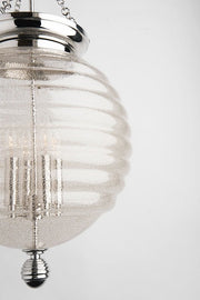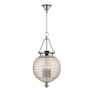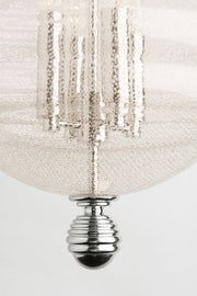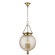 Brass mesh dissolves into spun glass in our Coolidge family. Its unifying theme is the beehive, with the iconic shape most prominently displayed in its artisanal diffuser. Cast metal canopy and finial spin subtle variations on the spherical shape.
