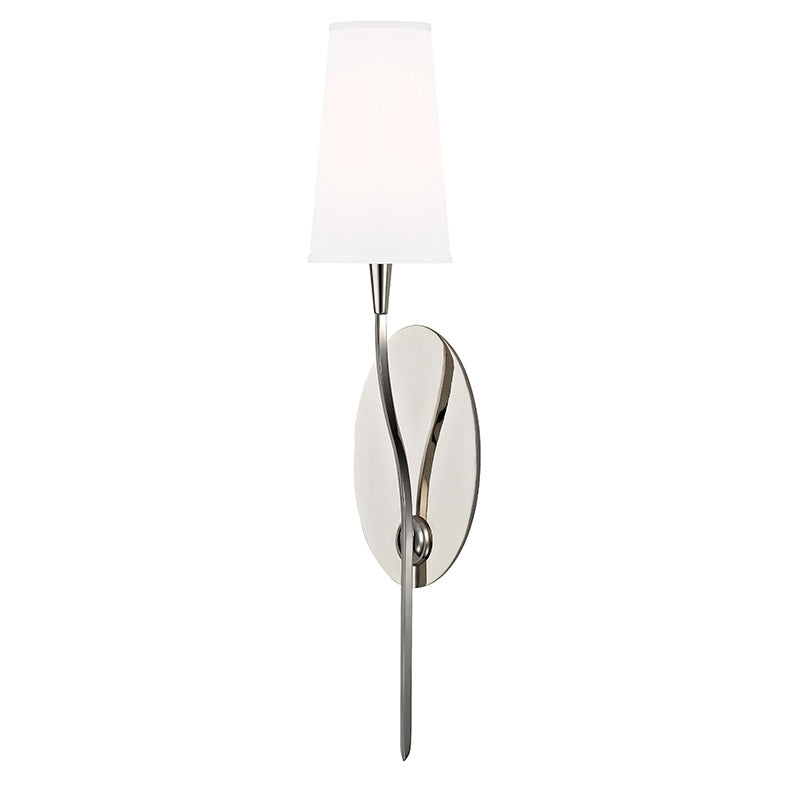 A smooth stroke of smart style: Rutland’s design takes a uniquely sensual form. Curving metal arms extend from the sleek oval backplate to the base of the conical shade, creating a natural, fluid composition.