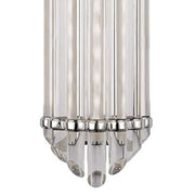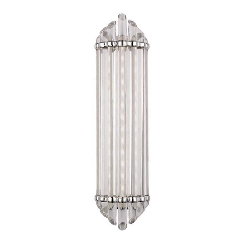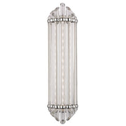 Fluted cast metalwork clasps Albion’s shimmering array of polished rods. The broad rods, beveled on each end, are arranged in tapering order before a frosted glass diffuser. Combining the bright light and energy efficiency of LED with the glamour of Art Deco style, Albion is a winning wall sconce or bath and vanity piece, sure to endure in both style and substance.
