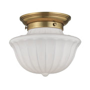 In the early 1920s, exposed-bulb light fixtures were jettisoned in favor of opaque glass globes that disguised the light source. These pieces found popularity predominantly in schoolhouses, giving this style its name. Here, we start with a classic schoolhouse glass shape and take it up a notch with lovely fluting that beautifully diffuses the light. The uncomplicated metal work and the iconic glass shape call to mind a time when the world seemed a simpler place.