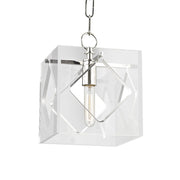 The pleasing simplicity of Travis’s cube shape with diamond cutaway, along with its sophisticated contrast of materials—acrylic and metal—make it a perennial darling. Its transparent sheen allows you to see various features of the room while its shapes make a playful design impact. By using modern materials on a tightly scaled chandelier, Travis offers a postmodern take on a Hollywood Regency style.