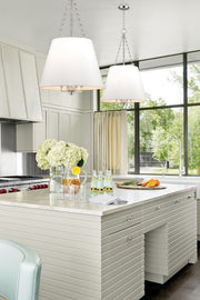 Clean-lined and smooth on the surface, closer inspection shows Burdett’s sumptuous side. Making allusion to late nineteenth century opulence, we adorn the interior of Burdett’s shade with richly gathered pleating. While the pendant’s subdued silhouette serves a contemporary sensibility, its lavish surprise rewards close appreciation.